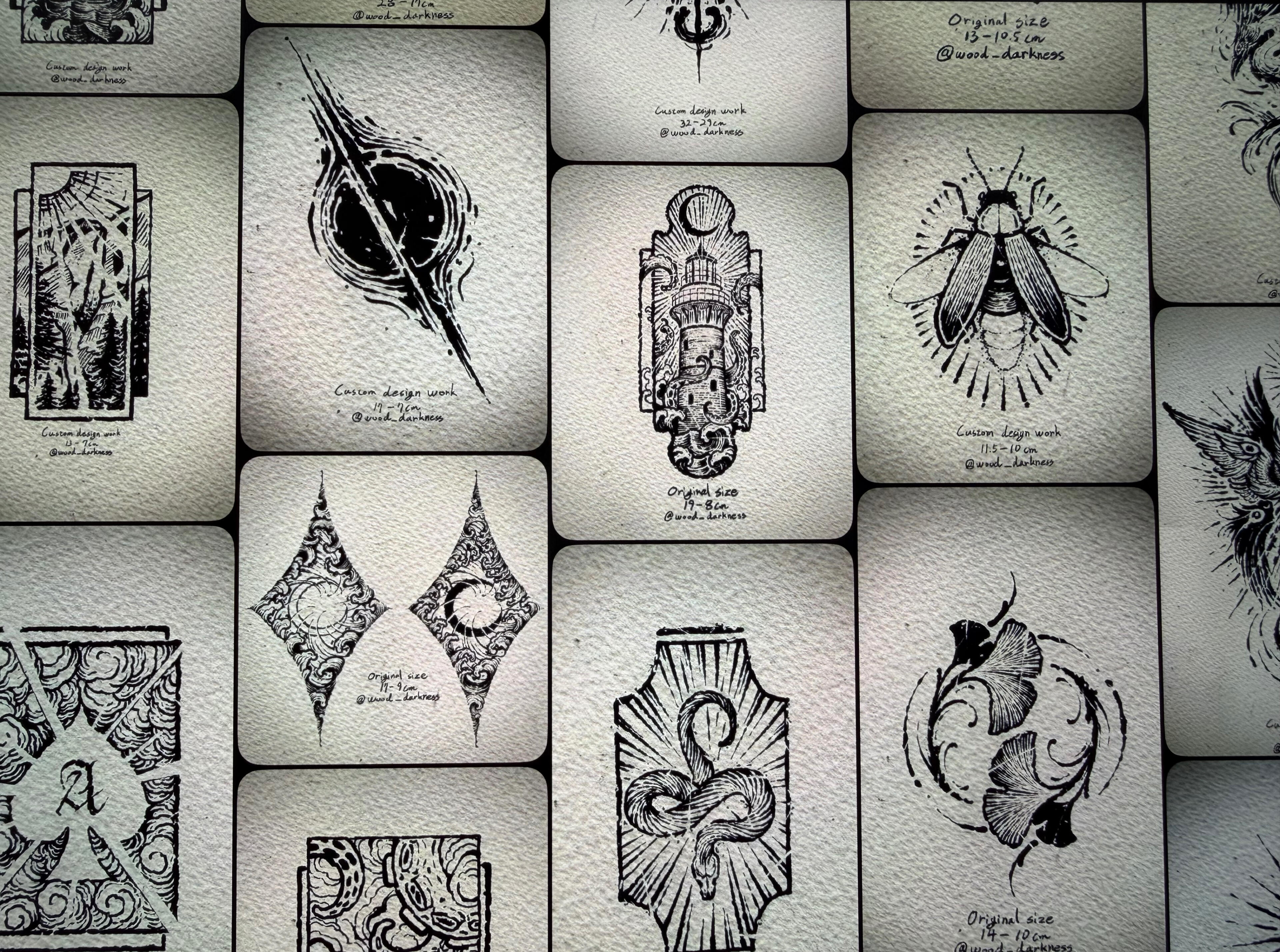 I work exclusively with only BLACK ink and negative space.If you’d like the same tattoo as one of my previous works, I’ll keep the original structure while creating a new textureI personally aim to create a new design each time.Flash, Concept, and Custom are priced under the same criteria.Private work follows a separate pricing structure.The deposit is 1/3 of the total amount and non-refundable.Rescheduling are free up to 30 days before your appointment. Within 30 days, rescheduling fee will apply